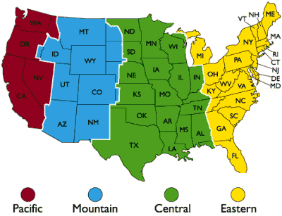 Outside of the US? Click here for a European time zone map, here for an Asian one, or here for a Latin American one.